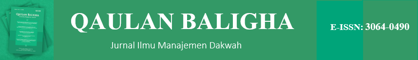 Qaulan Baligha: Jurnal Ilmu Manajemen Dakwah with E-ISSN: 3064-0490, is an academic journal published twice a year in April and October by the Post Graduate Studies UIN Sulthan Thaha Saifuddin Jambi. This journal is open access and publishes religious innovations and Islamic studies research in several academic fields such as Education, Islamic Law, Shariah Economics, Islamic Philosophy, Social Sciences and Humanities. The journal accepts manuscripts in Bahasa Indonesia and English from contributors with a relevant scientific background.